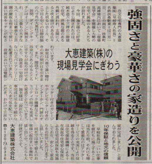 今後とも大恵建築株式会社に更なるご愛顧賜りますよう