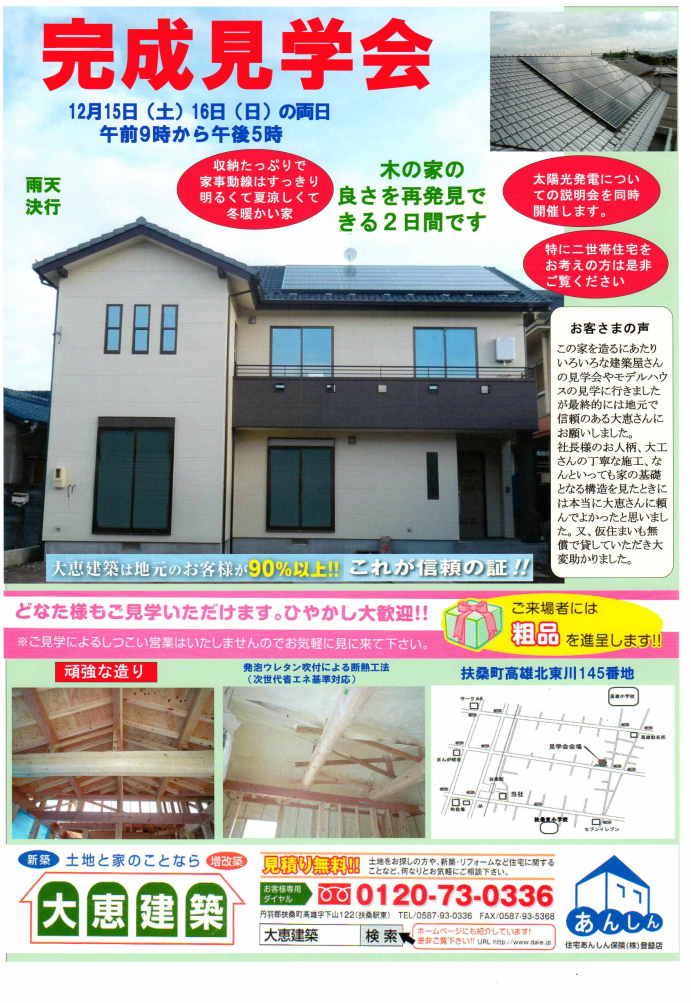平成24年12月15(土)16(日)に開催しました完成見学会には
