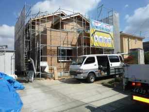 建て方の模様です。 バルコニーの防水工事を施工しています。