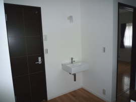 二階洗面 二階ホール階段室(窓は電動ルーバーを取付けました)